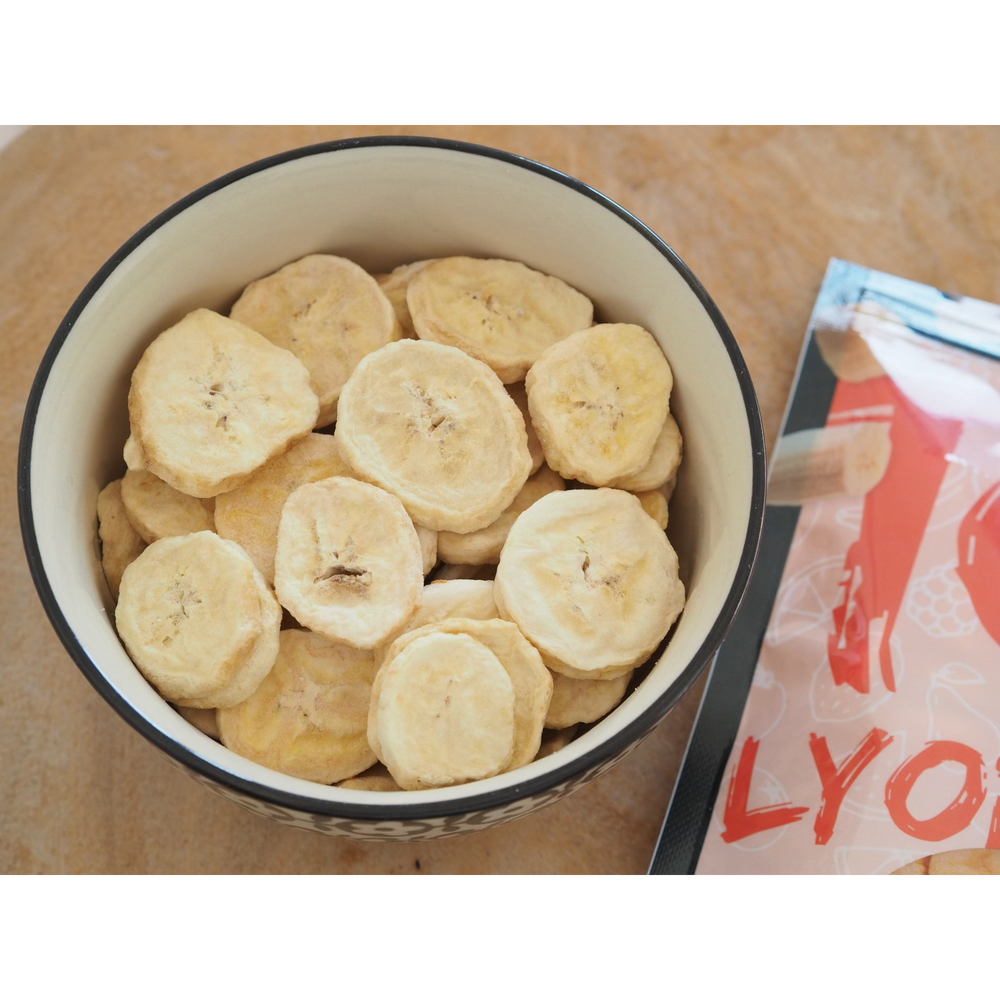 Knusprige Bananenscheiben, die ihre natürliche Süße und den milden Geschmack bewahrt haben – genau so schmeckt unsere gefriergetrocknete Banane. Durch die schonende Gefriertrocknung bleibt sie reich an Nährstoffen, Ballaststoffen und ihrem angenehmen Bananenaroma.