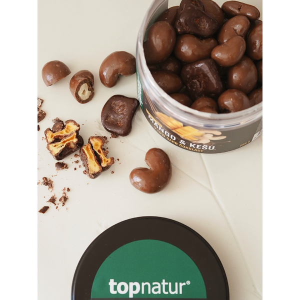 Eine Kombination mit Pfiff! Süß-frische, gefriergetrocknete Mangostücke in herber Low-Carb-Schokolade harmonieren perfekt mit den zart süßen Cashewkernen in cremiger Milch-Low-Carb-Schokolade. Das Ergebnis ist ein Päckchen voller Kontraste – fruchtiges Knuspern und cremige Zartheit in jedem Bissen. Ideal für alle, die ohne Reue naschen möchten.