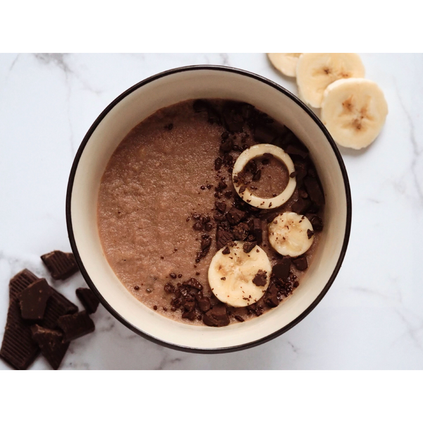 Die gefriergetrocknete Banane im Porridge ist allein schon eine tolle Ballaststoffquelle und zusammen mit der Schokolade ergibt sie eine sehr schmackhafte und ernährungsphysiologisch ausgewogene Frühstücksmischung.