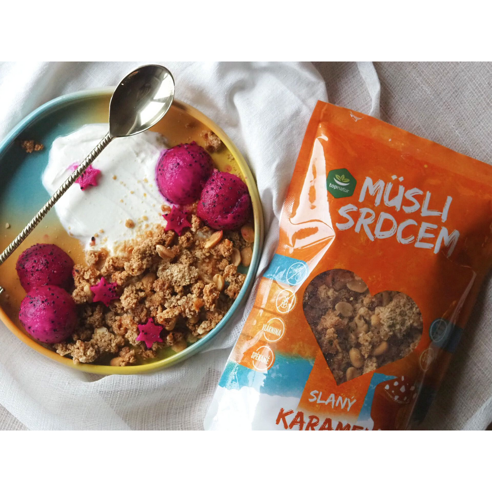 A golden-baked mixture of first-class nuts, gluten-free oatmeal combined with pieces of salted caramel is an absolute novelty in the Müsli srdkom range!