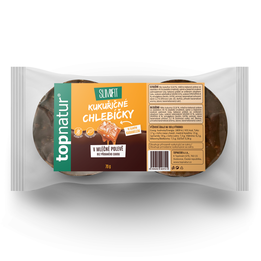 A fiber-rich snack with a delicate milk chocolate coating, no added sugar, and delicious salted caramel. Crispy corn cakes combine authentic flavor with lightness. They are pleasantly filling during the day, making them the ideal companion for travel, work, and moments when you want to treat yourself to something good while staying balanced.