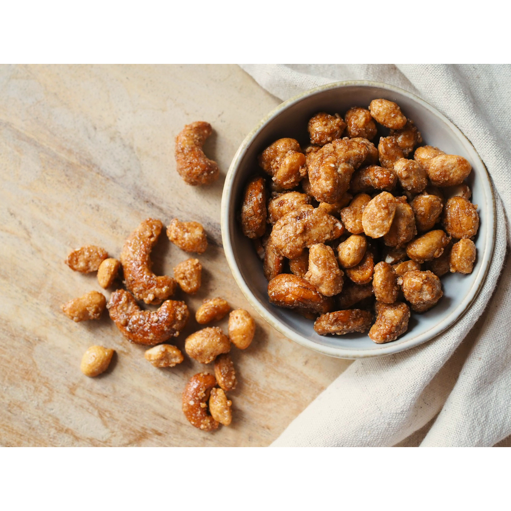 Golden baked mixture of nuts with honey and sea salt.