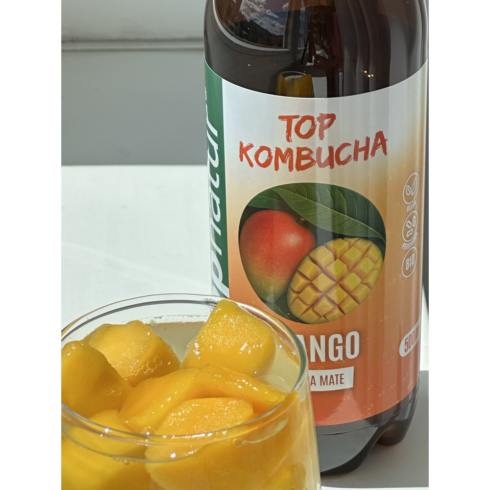 TOP Kombucha Mango is not just a drink â itâs an experience. The sweetness of tropical mango, in harmony with the gentle tang of kombucha, creates an irresistible taste sensation that delights all the senses. Whether after a workout, at work or while relaxing, it brings you a moment of sunny ease.